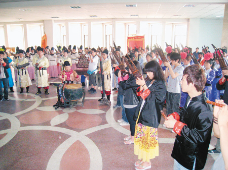 上圖為6家樂社為在中國文化遺產日期間舉行大型西安鼓樂演出進行排練。