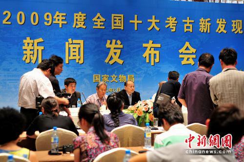 中新網蘇州6月11日電(李克祥)今天,在2009中國文化遺產日主場城市蘇州,國家文物局副局長童明康宣布了“2009年度全國十大考古新發現評選結果”。