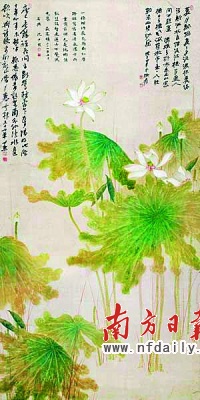 此次拍賣的張大千《高潔圖》是1948年張大千所繪的兩件重要的“荷花圖”之一,其中一件曾委托何香凝贈送毛澤東,現(xiàn)藏于中南海毛澤東故居。另一件即為此作,尺寸比前者更大,也是拍場上少見的張大千巨制。