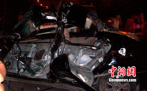 5日夜11時40分許,揚州市東區解放北路文昌花園北大門發生一起惡性交通事故,一輛牌照為蘇KB9652本田轎車從解放北路由西向東行駛,由于車速過快為避讓與前方行駛的出租出追尾時,肇事車駕駛員緊急剎車,在剎車時向右打了一把方向,轎車頭朝南車尾朝北向前滑出30多米后撞上停在路邊的大卡車尾部,停在路邊掛在檔上的大卡車被撞發動起來,向前開動了200米左右撞在一輛停放在路北側的一輛中型卡車停下。肇事轎車上四名年輕男子均受傷,其中兩人傷勢嚴重。