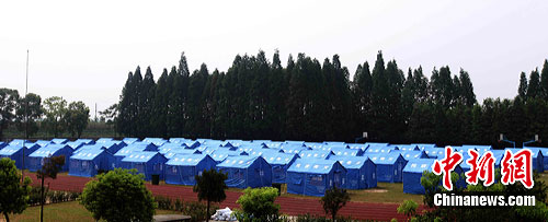 在集中安置點漢南中學,操場上已經搭建起了一排帳篷,凌晨前轉移來的消泗村民正在有序領取食品和礦泉水。在各個教室里歇息的村民情緒穩定,有的在靜靜休息,有的在小聲談說。