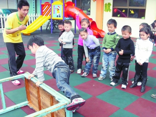 金華職業(yè)技術(shù)學(xué)院師范學(xué)院的羅主任說,“因?yàn)槟欣咸珟熒伲紩?huì)在幼兒園擔(dān)當(dāng)頂梁柱的角色,其實(shí)很有發(fā)展前途。”