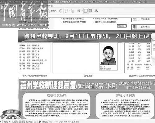 這位老師還反映,新理想高復在《2010年高考一批學生名單公示》里公示了100多名學生的成績,也有“貓兒膩”:其中32名高分學生名單重復出現在新理想高復和其嘉興校區的網站上。雖然兩校有一定的關系,但是兩個學校屬于不同法人開辦,并且嘉興校區是屬于合作辦學情況,新理想高復將嘉興校區的高考成績公示到自己網站,“有欺騙和弄虛作假之嫌”。