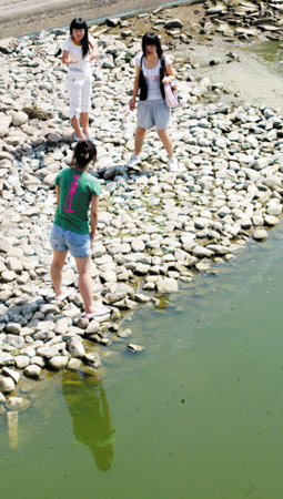 一群大學生在大胡同附近的河邊“演戲”,有人扮演輕生者,有人扮演勸阻者,他們這樣做是想向同齡人宣傳珍愛生命。不過,在不少圍觀者看來,在鬧市區如此“演戲”,作秀的成分似乎多于宣傳。