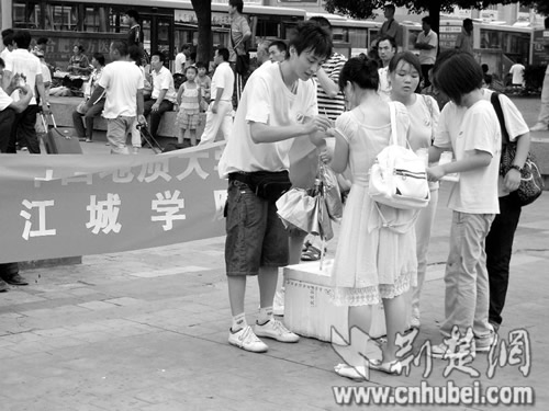 荊楚網消息 (楚天金報)記者梅瑩 通訊員黃磊實習生曾浩報道:“6天時間我們已經賺了將近4000塊錢了。”7月11日,本報第8版報道了地大江城學院的15名大學生,每人懷揣100元赴合肥進行異地生存體驗的消息。17日,隊長楊柳打電話向記者報喜:目前15名隊員均已開始“自力更生”。