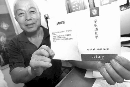 大河報 記者郭致遠文首席記者閆化莊圖 今年66歲的宋殿興,是鞏義市大峪溝鎮人,自幼喜歡《西游記》及佛教文化。7月16日,一個足夠改變宋殿興后半生軌跡的日子來了,中科院專家把他引薦至北京大學,該校哲學系一眼“相中”,將其錄取為宗教學專業佛教文化方向研究生。