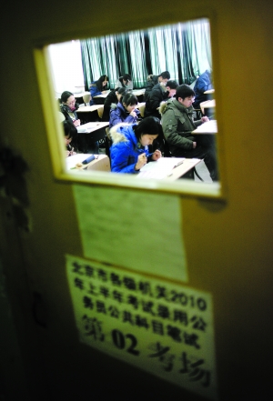 7日,北京2010年上半年公務(wù)員招錄筆試舉行。和“國考”類似,北京“公考”中,申論關(guān)注的是和環(huán)保、健康相關(guān)的問題,要求就健康對國家強(qiáng)盛、社會和諧、人民幸福3方面關(guān)系展開論述。此次“公考”首次實(shí)現(xiàn)應(yīng)屆生和在職人員“混考”,并首次實(shí)現(xiàn)電腦閱卷。