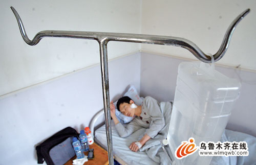 烏魯木齊在線訊(記者劉盼 梁坤 實習記者郭曉寧攝影報道) 5月13日中午,新疆法制報攝影記者郭詠在烏魯木齊市幸福路15小學附近采訪時,遭到一店主毆打,面部受傷。新疆記者協會副主席、新華社新疆分社社長樊英利前往醫院看望慰問受傷記者。