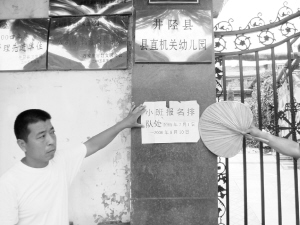 昨日下午,記者與井陘縣縣直機關幼兒園副園長王滿林取得聯系。她介紹說,縣直機關幼兒園是井陘縣唯一一所公辦幼兒園,從2004年開始面向社會招生。考慮到接收能力有限,他們今年還特意晚于其他幼兒園招生,沒想到來報名的人還是遠遠超過招生計劃。