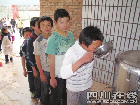 “同學們,現在是集中供水時間,請大家排好隊到供水點喝水。”24日下午2時,橫江鎮西林村堰村小學,校長官文權敲響了清脆的鐵鐘,孩子們從各班級教室里蜂擁而出,跑向操場邊的開水爐旁排隊。