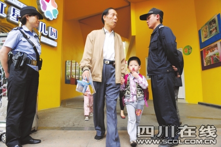 成華警方表示,繼對轄區學校實行“一校一警”后,從昨日起,轄區內所有幼兒園也安排了警察執守上下學時段。執勤民警佩帶了伸縮警棍、催淚瓦斯和手銬等單警裝備。該區目前還啟動了社區保安聯動機制,同時在校內外安裝監控、聯網報警系統等。