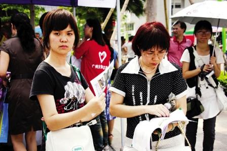 多數考生和家長是有備而來,直接走到選定了的學校和專業前咨詢,問題涉及高校招生情況、歷年錄取分數線和就業前景等,還掏出筆記本不停記錄。還有些考生和家長沒有定向,廣泛撒網,轉了一圈,抱了一大摞資料,準備回家后慢慢看。