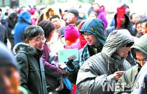 文史樓前貼出一張通知,請候考的家長到一教樓去休息。但在這個寒風肆虐的惡劣天氣里,家長們都選擇站在樓前,等待孩子的好消息,一些第二天才參加考試的學生和家長也提前過來體驗一下。在文史樓后面,一些家長趴在窗戶邊,聚精會神地盯著看考室里的狀況。從窗戶往里看,五個考生坐在三個考官對面,開始是輪流答題,之后進入自由問答階段,再往后是舉手“搶答”。有位家長急于想聽到考場里的“秘密”,耳朵都快貼到窗戶上了,不過他最終搖搖頭笑著說,其實一句話都聽不見,只是自己覺得挺緊張的。(賴芳杰)