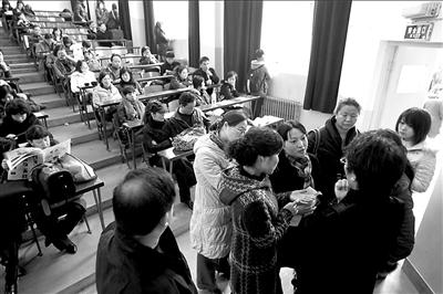 與往年一樣,今年中傳大仍推行網上報名,藝術類專業全部實行網上報名、網上交費、網上約考。由于很多考生反映未報上名,學校特意在2月7日安排人員為考生現場補報,但部分考生仍未能趕上這次補報。為給考生考試機會,昨天上午,學校在教務處臨時設置了一個報名點,方便學生補報。