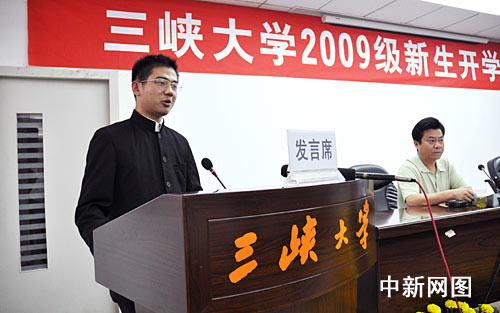 中新網宜昌10月9日電(記者 郭曉瑩)10月9日下午,三峽大學為包括“最牛作文考生”周海洋在內的5名新生舉行了一個簡短而隆重的開學典禮,至此,周海洋正式就讀于三峽大學。