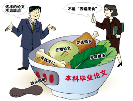 華南理工大學新聞學院05級的小旭談起自己去年寫畢業論文的情形,百感交集:“新聞專業本科畢業論文確實很難在理論上有突破或創新。對于本科生,要對新聞學研究或新聞學史論有什么突破,太勉為其難!敝写笮侣勏诞厴I的小鄭認為,“應該取消,我們對新聞的學習只是簡單的學習,做新聞只有在媒體實習中積累實戰經驗;另一方面,很多畢業生的論文都是從網上東拼西湊出來的,對自己的論文根本沒有進行深入的了解。”