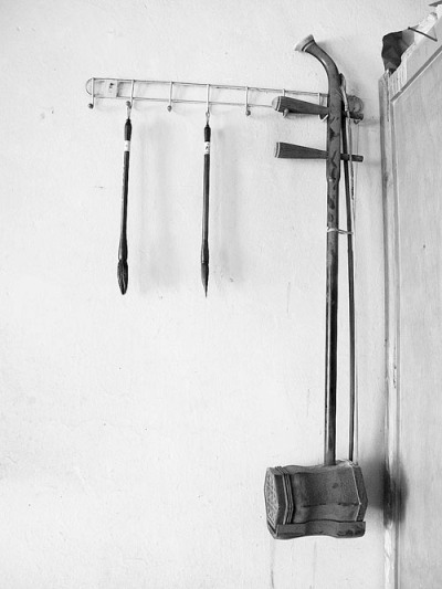 劉萬芳死后,同事蔣得地把手風琴鎖進了皮匣。他清晰地記得,兩人的最后一次唱和發生在去年六一兒童節匯報演出。此后,劉萬芳“高血壓”纏身,加之事務繁忙,二胡被束之高閣,再也沒拉響,如今,它已是塵埃滿布,再也發不出聲響。