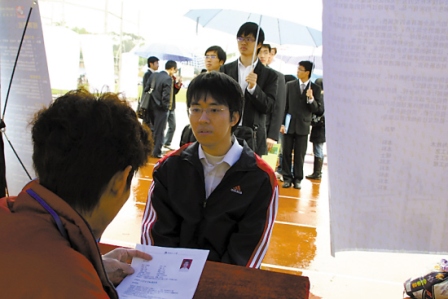 在深圳他沒有找到理想的去處,又踏上火車,來到廣州。在廣州已參加三場招聘會,他拿到了一份面試通知單。他說自己會盡力爭取留下,“他們只要愿意要,不管什么待遇,我都不放棄!” 本報記者 夏楊 實習生 支少容 郭梅美
