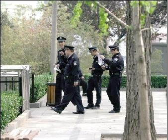 昨天下午2點30分左右,數(shù)輛警車停到中國美術(shù)館東側(cè)一社區(qū)花園外。10余名民警沖進(jìn)花園,直奔花園南門西南角的兩個書包。“警察們圍著書包轉(zhuǎn),不停地打電話。”當(dāng)時在花園的一位老太太說,一名民警悄悄靠近書包用耳朵貼著書包聽,但好像并未發(fā)現(xiàn)動靜。隨后,民警開始向花園里其他群眾做調(diào)查。