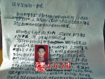 核心提示:新鄉13歲少年崔鑫沒有想到升入初中會是自己人生噩夢的開始,噩夢來自于崔鑫的一名同班同學。每天走進校園,他都必須面對這位同學的“折磨”。終于,在忍耐了一個多學期后,為了徹底結束自己在校園的 “屈辱”生活,結束每天幫別人代寫作業的“奴才”命運,這個13歲的男孩在一個周日的午后,用打好的繩套結束了自己的生命。臨走前,他留下了一封寫給父母的遺書、一封寫給班主任卻沒有寄出的信。