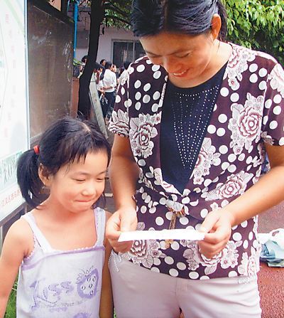 早在開學前一兩個星期,劉國紅夫婦就開始湊孩子們的學費了,吃的用的,能省就省。黃小粉說:“老家去年開始就免除學雜費了,我們本想著等孩子大一些的時候,就把他們送回老家讀書。現在城里讀書也免費了,只要我們在城里還生活得下去,就讓他們繼續在這兒讀。一來孩子跟著自己放心些,二來城里學校水平高些!”他們說,大女兒剛來西馬路小學讀書的時候,已經二年級了,連句子都念不通順,而現在作文寫得很不錯。
