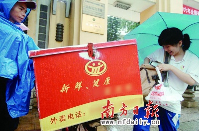 一名保衛處負責人也表達了相同觀點,“食品安全責任現在非常敏感,學校食堂的飯菜經過層層把關,但外面小店的食品安全就很難保障,萬一出現問題,責任很難劃定。”他表示,原則上不準把外賣帶進校園的做法,絕對不是強制學生一定要在飯堂吃飯。“食堂飯菜是不準漲價的,因此食堂是虧錢的,吃得越多虧得越多,虧損部分由學校補貼。”