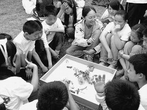 申荷永正在組織北川中學的學生玩一個名叫“沙灘游戲”的活動。這個將心理治療手段隱藏在游戲之中的沙盤深受孩子們喜愛。