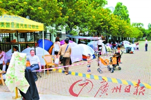 連續幾天的祈福幼兒園家長露天排隊等位進入最后一天。