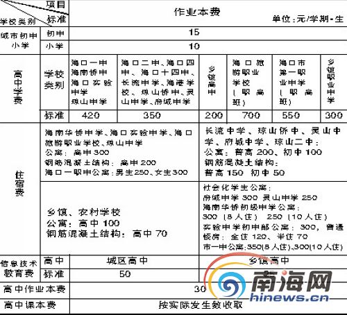 通知要求:對(duì)在校就讀的義務(wù)教育階段中小學(xué)生免除雜費(fèi)、課本費(fèi)、信息費(fèi);對(duì)在農(nóng)村就讀的義務(wù)教育階段的學(xué)生免除作業(yè)本費(fèi);對(duì)在城市就讀的義務(wù)教育階段的學(xué)生作業(yè)本費(fèi)按瓊發(fā)改收費(fèi)[2004]1427號(hào)文規(guī)定執(zhí)行;義務(wù)教育階段的住宿費(fèi),按瓊發(fā)改收費(fèi)[2004]1427號(hào)文規(guī)定執(zhí)行,但在鄉(xiāng)鎮(zhèn)以下(含鄉(xiāng)鎮(zhèn))學(xué)校就讀的義務(wù)教育階段的學(xué)生免除住宿費(fèi)。