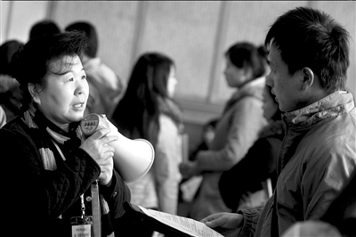 昨天上午8點(diǎn)30分,表演系考生現(xiàn)場報(bào)名確認(rèn)工作在中戲?qū)嶒?yàn)劇場開始。由于一些考生未在規(guī)定期限內(nèi)網(wǎng)上報(bào)名,中戲在劇場外設(shè)置了兩臺電腦,以方便考生補(bǔ)報(bào)。現(xiàn)場還為考生和家長們安排了椅子和飲用水,一名老師拿著喇叭指引考生進(jìn)場報(bào)名,并為考生解答各種問題,現(xiàn)場未現(xiàn)擁擠場面。