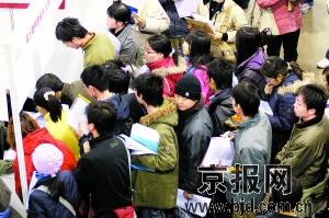 吳婷,北京某高校的英語系高材生,談及近四個月參加招聘會找工作的經歷,用了“不堪回首”這個詞。她將耳邊的一縷長發撥到腦后:“都說三千煩惱絲,但是找工作,去招聘會更令人煩惱。”