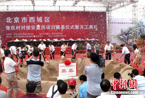 中新網北京7月30日電(陳虹 陳建)北京區劃調整后的新西城區首個對接安置房項目,7月30日在毗鄰的豐臺區盧溝橋鄉張儀村路西側破土動工。該項目將緩解新西城區的城區人口壓力,推進舊城改造,改善中心城區居民居住條件。