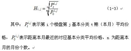 對于該類樓盤,依據(jù)該樓盤本月之前三個月內(nèi)離本月最近的各分類成交數(shù)據(jù)計(jì)算各分類平均價(jià)格,再利用下列計(jì)算公式計(jì)算基本分類環(huán)比價(jià)格指數(shù):