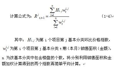 根據(jù)70個大中城市基本分類月環(huán)比價(jià)格指數(shù)分別利用各城市本月銷售面積和金額作為權(quán)數(shù)計(jì)算價(jià)格指數(shù),然后將兩個價(jià)格指數(shù)簡單平均。