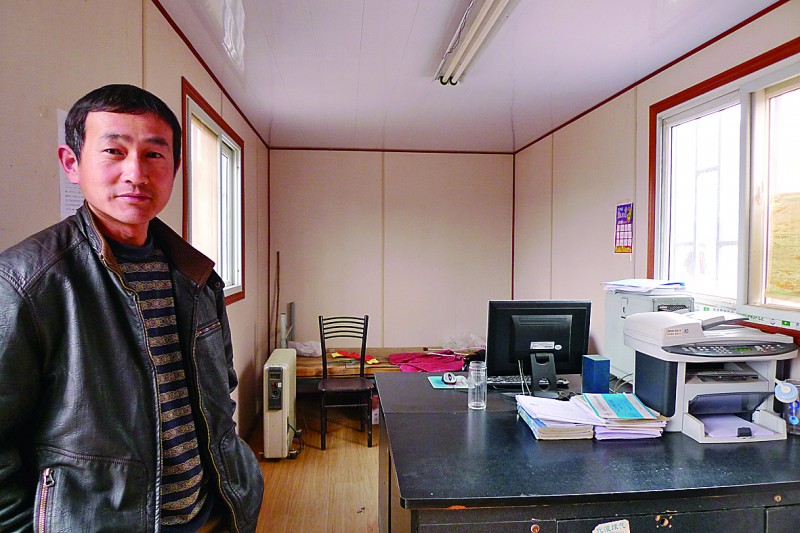 “你看到的只是外面,里面更好。”該工地一位姓馮的負(fù)責(zé)人自豪地說。果然如馮先生所言,房間內(nèi)部別有洞天。四周墻壁不但加裝了保溫層,還進(jìn)行了裝飾。上有吊頂?shù)鯚簦落亸?fù)合木地板,窗戶上包了窗套,墻上安了插座和電箱,空氣開關(guān)的電閘有模有樣,桌上還放著電腦和打印機(jī)等辦公設(shè)備。“怎么樣?還不錯(cuò)吧?在工地上住這樣的房子算是一種奢侈了。這些電源插座都不是擺設(shè),用暖氣和空調(diào)都沒問題。”馮先生介紹說。