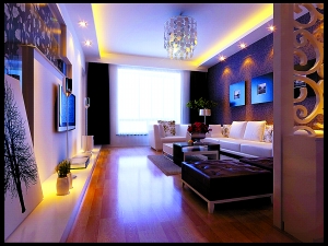 本設計方案采用現(xiàn)代簡約的表現(xiàn)手法,客廳中,電視幕墻以玻璃切割和墻體巧妙的結(jié)合為一體,簡潔而又不失高雅。設計師利用素色的墻紙,再配以大幅的花色加以點綴,又采用溫潤的原木色地板提升視覺上的升溫,然后,巧妙地點綴了綠色植物和花卉,使整個家居格調(diào)增添無限生機。