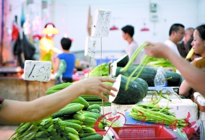 為了證實徐玲說法的真實性,記者在新街市內的一個檔口買了兩斤菜心,單價為2元/斤,在兩三公里外的沙鳳綜合市場,記者又買了2斤半菜心,單價只為1.5元/斤。