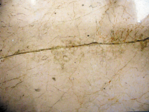近日,記者來到羅湖寶安南路幸福里樓盤,并隨當事人李小姐前往她在小區(qū)3棟某戶的公寓。剛出電梯,一大堆裝修材料便映入眼簾,而房內(nèi)也是一片狼藉一片。在公寓內(nèi)部,堆放著一些拆卸下來的裝修材料及部件,客廳屋頂轉(zhuǎn)角處依稀有滲水的痕跡,衛(wèi)生間及廚房部分的門框都被拆掉。除此之外,當事人還向記者指點了多處大理石的裂紋。