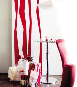 壁紙以一種特殊的紋路、花色及肌理變化,使墻面獲得良好的裝飾效果。除了常規的鋪貼方法,我們還可以用壁紙做局部裝飾。你可以選擇一些圖案或色彩強烈、肌理效果突出的壁紙來做一下嘗試,比如將壁紙與涂料交叉運用,或將條紋壁紙斜鋪,或選取花卉壁紙中的圖案作為掛畫處理來裝飾墻面,都會取得意想不到的效果。這些手法會使空間更加活躍,俏皮可愛,也充分展現了壁紙的另類風情。