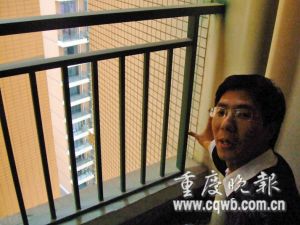 陽臺欄桿間距太寬,袁先生很擔憂。陳靜/攝影 (圖片來源:重慶晚報)