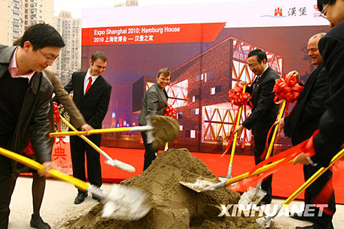 3月31日,2010年上海世博會城市最佳實踐區(qū)內(nèi)的德國漢堡市參展案例“漢堡之家”舉行動工儀式。“漢堡之家”將通過高隔熱隔音、密封性強的建筑外墻和可再生的能源實現(xiàn)每年每平方米消耗50千瓦,相當(dāng)于普通辦公樓四分之一的平均能源消耗量。漢堡將在世博會上通過“漢堡之家”和豐富多彩的展覽,以城市可持續(xù)發(fā)展和注重生態(tài)、保護環(huán)境的建筑為主題,展示德國在宜居城市方面的探索和實踐。任瓏 攝