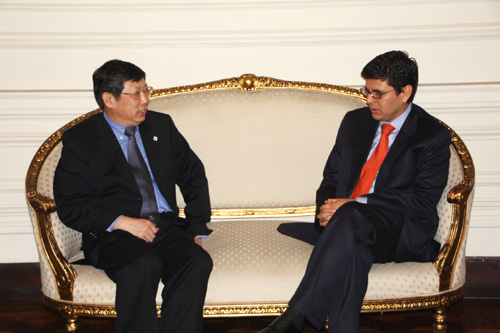 上海世博會組委會委員、執委會常務副主任、上海市委常委、常務副市長楊雄與利馬市第一副市長帕拉(Marco Parra)會談。