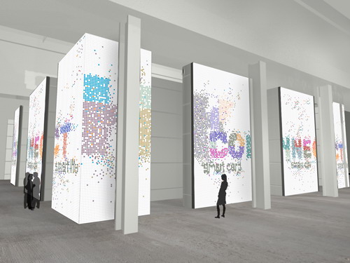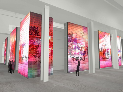 香港案例展覽結構高6米,占地約530平方米。展覽結構的光滑外墻會顯示動畫影像,影像隨著參觀人流的模式而轉變。每個影像點,代表著一名進入展覽場地或瀏覽網上展覽的參觀者。參觀者進入展覽后,便仿如置身于充滿動感的影片當中。