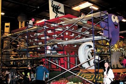 巡游前夕,記者在帕薩迪那的花車制作工廠遇到了花車巡游現場總指揮鹿強。雖然對花車行進路線、表演時段早已了然于胸,但是他不放棄任何細化方案的機會。