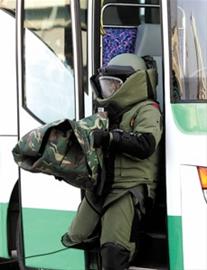 雖是演練,但現(xiàn)場(chǎng)所有應(yīng)急處置卻一絲不茍。導(dǎo)游及賓館員工根據(jù)應(yīng)急預(yù)案,分別向110、119報(bào)警,并向上級(jí)部門報(bào)告,同時(shí)引導(dǎo)游客緊急疏散到安全地帶。消防特勤官兵接警后立即對(duì)現(xiàn)場(chǎng)進(jìn)行警戒,一名攜帶手提式X光機(jī)的排爆隊(duì)員與另一名攜帶防爆毯的排爆隊(duì)員迅速對(duì)可疑物進(jìn)行檢測(cè),同時(shí)另一組排爆隊(duì)員操控排爆機(jī)器人將可疑物取出,并利用防爆毯將可疑物轉(zhuǎn)移至空曠地帶,架設(shè)水炮將其摧毀。