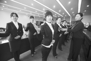 “尊敬的各位來賓你們好,歡迎來到吉林館參觀!弊蛉障挛1時許,志愿者在培訓教師的帶領下,認真地練習著每一個動作和每一個發聲。“立正、收腹、微笑……”老師也在不厭其煩地重復著動作要領。