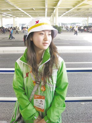 張?bào)蘩霞以诮鳎菑?fù)旦大學(xué)視覺(jué)藝術(shù)學(xué)院的大一學(xué)生,標(biāo)準(zhǔn)的90后女孩。通過(guò)網(wǎng)上報(bào)名并獲得任用后,她成為了上海世博會(huì)首批志愿者,而如果再細(xì)分則可稱作“高峰期志愿者”。“每天早上7點(diǎn)半不到就得到園區(qū),晚上下班時(shí)間不定,至少10點(diǎn)以后吧。”張?bào)薷嬖V記者,她每天要做的,就是站在這處位于商業(yè)中心最繁華的街角,為任何有需要的游客提供力所能及的幫助。接受采訪時(shí),女孩才正式上崗短短半日,“已經(jīng)為至少20個(gè)游客指路,或是回答他們的一些咨詢。”