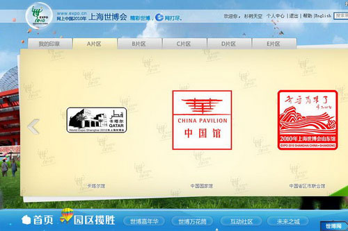 “網上世博護照”所用的展館印章與實體展館的基本一致。這些印章生動體現了各展館的特色,具有收藏價值,同時,網民還可以隨時查看已經收集的印章與尚未收集的印章,并可在論壇發帖,將自己收集的印章與網友分 享。