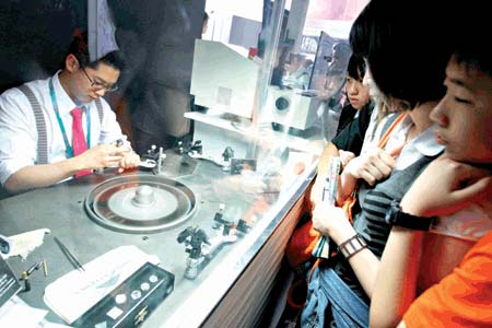 據(jù)劉子斌介紹,此次他們?cè)谑啦⿻?huì)上首次開辟了裸鉆售賣的服務(wù),價(jià)位從1萬(wàn)元到45萬(wàn)元不等,沒(méi)想到在短短的兩個(gè)多星期內(nèi),就售出50多顆,其中最大方的一位買家更是買下了一顆價(jià)值20萬(wàn)元的裸鉆。(范彥萍)