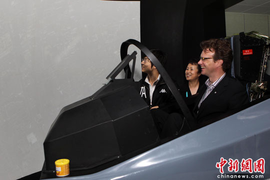 來到大型飛機(jī)模擬機(jī)展區(qū),大山嫻熟地坐進(jìn)駕駛艙體驗(yàn)飛行。“那是浦東、這是陸家嘴。”他一邊操縱模擬機(jī),一邊辨認(rèn)著大屏幕上出現(xiàn)的地面標(biāo)志性建筑物。大山對環(huán)形屏幕中顯示的上海非常熟悉,認(rèn)出了很多地點(diǎn),并笑稱要從世博會(huì)加拿大館上空飛過。走下駕駛艙,大山幽默地稱自己有點(diǎn)快學(xué)會(huì)開飛機(jī)了。